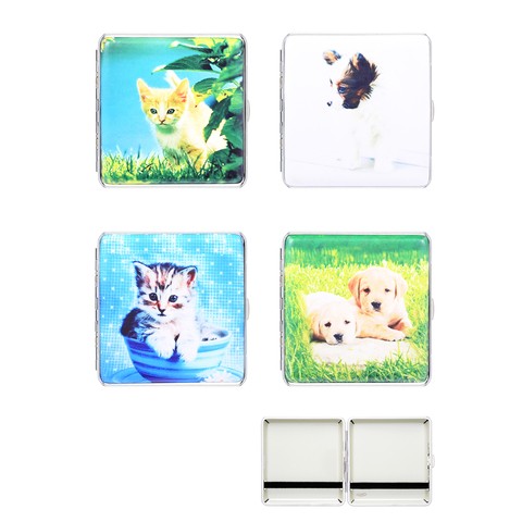 Cigarrera de metal marca ATOMIC con diseƱo de perros y gatos.