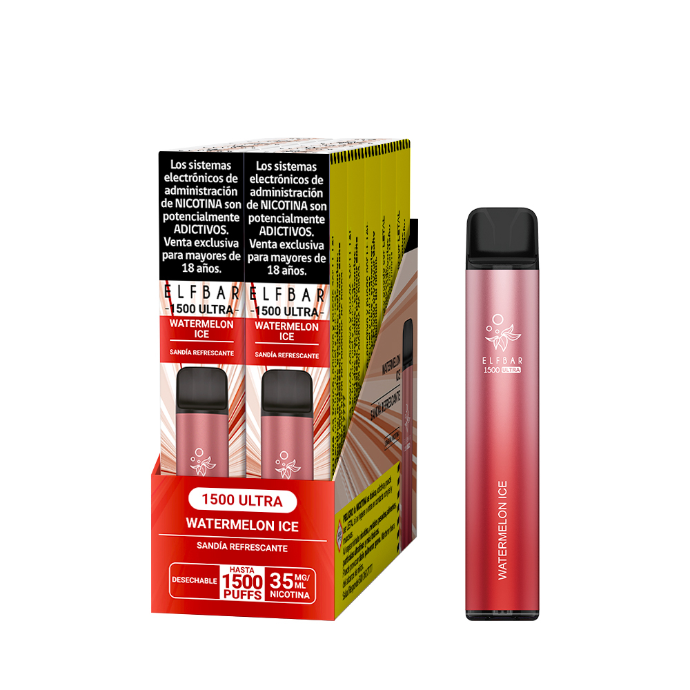 El Elf Bar 1500 Ultra es un vapeador desechable diseñado para ofrecer hasta 1.500 caladas sin necesidad de recarga o recambio. Tiene una batería integrada y viene listo para usar. 10 Unidades por Display