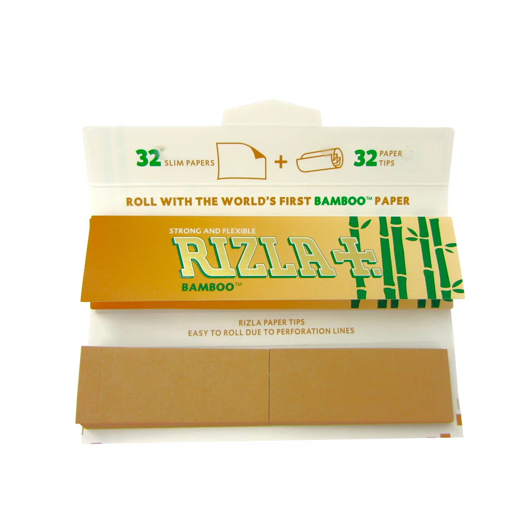 Papele 100% bamboo extra fino, con una lenta velocidad de quemado lenta + Boquillas Rilza. Cada librito contiene 50 papelillos y 50 tips.