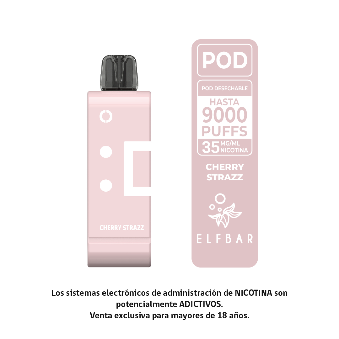 POD 9.000, es un sistema de POD del cual vienen distintos sabores, con una capacidad de 9.000 caladas, el cual se debe adaptar solamente a tu batería del KIT Elf bar. 10 Unidades por Display