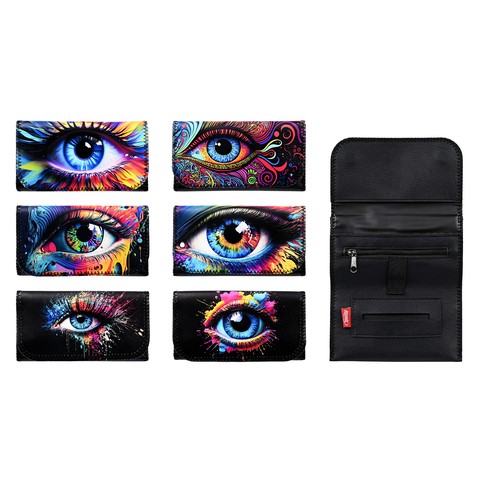 Tabaquera marca ATOMIC, diseƱo Ojos.